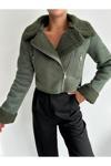 Laluvia Yeşil Dakota Süet Kürklü Mont