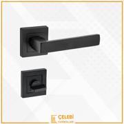 Lama Kol Kare Rozetli Siyah WC Kapı Kolu, modern ve şık tasarımıyla iç mekan kapıları için ideal bir tercihtir.
