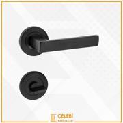 Lama Kol Yuvarlak Rozetli Siyah WC Kapı Kolu, modern iç mekanlarda şıklığı ve fonksiyonelliği bir arada sunar.