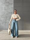 Regular boy uzunluğu her bedene uygunluk gösterirken flare siluetiyle trend bir görünüm sunar.