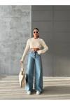 - Denim kumaşı, dayanıklılığı ve şık görünümü ile öne çıkar.