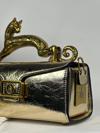 Paris Cat Handle Gold Clutch Bag - Limited Edition Metalik Altın El Çantası