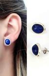 Lapis lazuli taşlı 925 ayar gümüş tasarım el işi oval küpe