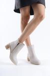 LARISSA Fermuarlı Ortopedik Taban Topuklu Kadın Bot  CKT - Krem