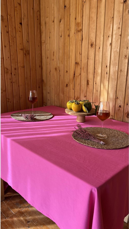 Doğal ham ketenden üretilen masa örtüsü evinizde bohem bir görüntü sunar.