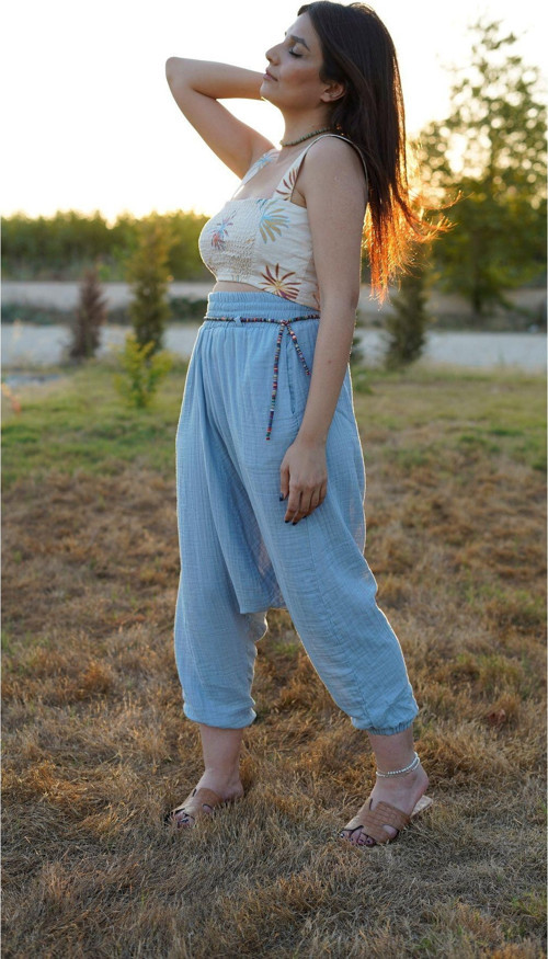 Sade ve şık tasarımıyla her ortama uyum sağlayan düz desenli modern adana şalvarı, günlük kullanım için idealdir