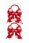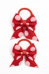 2 adet kırmızı–pembe puantiyeli fiyonk saç tokası