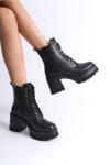 LAUREN Bağcıklı Fermuarlı Ortopedik Taban Topuklu Kadın Bot CST - Siyah