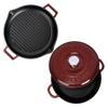 1 Adet - Yuvarlak Izgara Tavası Döküm Demir Yekpare Çift Kulplu Çap(Ø)30cm.-Bordo