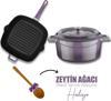 1 Adet - Izgara Tavası. Kare. 26x26cm.Döküm Demir. Yekpare Saplı. Emaye 3 Kat, 2 Fırın.