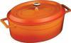 Lava Trendy Oval 29cm Döküm Demir Tencere Turuncu Malzeme Kaplama: 3 kat emaye kaplama, 2 fırınlama. Malzeme Kalınlıkları: Taban: 3,5mm. Kenar: 3mm. Lava Trendy Oval Döküm Demir Tencere 29cm çapında