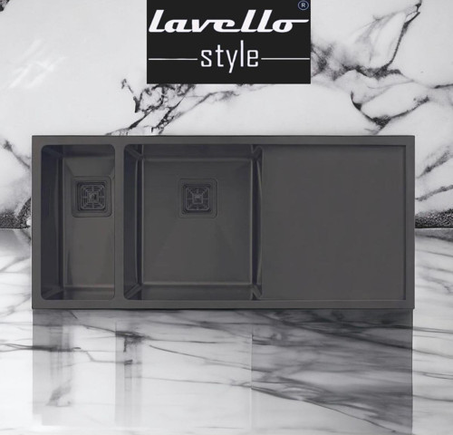 Lavello Style Meta 4018 L Sağ Damlalıklı 1,5 göz Pvd Kaplam Füme Siyah Paslanmaz Çelik Mutfak Evyesi (Sifon Dahil)