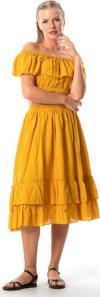 Eliş Şile Bezi Lavinya Beli Lastikli Vual Uzun Yazlık Etek Hardal Hrd