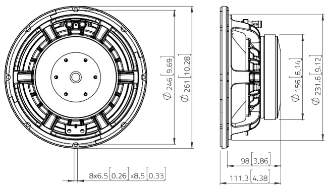 Lavoce WAF102.50, 10 inçlik güçlü bir woofer olarak olağanüstü performansı ile dikkat çeker. 2,5 inçlik CCAW ses bobini ve 97 dB SPL hassasiyeti sayesinde net ve yüksek ses sunar. Ferrit mıknatıs yapısı ve optimize edilmiş alüminyum şasi, bu hoparlörün dayanıklılığını ve ses kalitesini artırır. FEM optimizasyonlu motor ve süspansiyon sistemiyle en zorlu koşullarda bile kararlı performans gösterir.