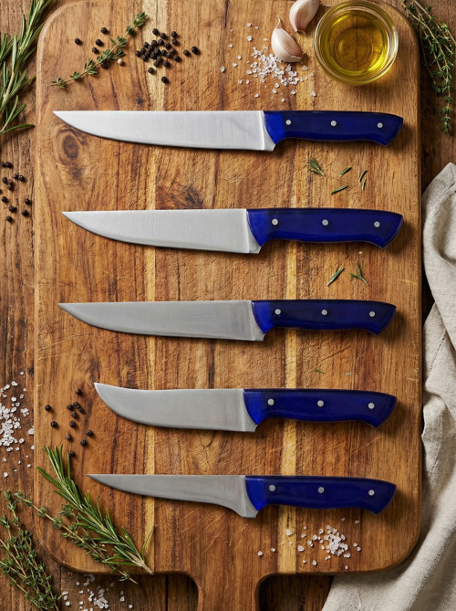Ocean Pro serisi, mutfakta profesyonel ve modern tasarımı bir arada sunmak için özel olarak tasarlanmıştır.; Okyanus mavisinden ilham alan şık sap rengi, ürüne ferah ve premium bir görünüm kazandırırken; güçlü paslanmaz çelik bıçak yapısı sayesinde uzun ömürlü ve güvenli bir kullanım sağlar.; Hem ev kullanıcıları hem de profesyonel mutfaklar için ideal bir settir.; Bıçakların tamamı yüksek kaliteli paslanmaz çelikten üretilmiştir.; Bu sayede paslanmaya karşı dayanıklıdır, uzun süre keskinliğini korur ve yoğun kullanıma uygundur.; Keskin ağız yapısı sayesinde et, tavuk, balık, sebze ve meyveler kolaylıkla doğranır ve dilimlenir.; Pürüzsüz yüzeyi, gıdanın bıçağa yapışmasını azaltarak daha kontrollü kesimler yapılmasına yardımcı olur.; Ergonomik mavi sap tasarımı, ele tam oturacak şekilde şekillendirilmiştir.; Kaymaz yüzeyi sayesinde ıslak ellerle bile güvenli kullanım sunar.; Dengeli ağırlık dağılımı, bilek ve el yorgunluğunu azaltarak uzun süreli mutfak çalışmalarında konfor sağlar.; Sağlam perçinli yapısı, bıçak ile sap arasındaki bağlantıyı güçlendirir.; Ocean Pro serisi, mutfakta ihtiyaç duyulan tüm temel bıçakları tek sette bir araya getirir.; Günlük yemek hazırlıklarından profesyonel sunumlara kadar geniş bir kullanım alanı sunar.; Set İçeriği (5 Parça) • Şef Bıçağı: Et, sebze ve genel doğrama işlemleri için • Dilimleme Bıçağı: Et ve büyük gıdaların düzgün ve ince dilimlenmesi için • Çok Amaçlı Bıçak: Günlük mutfak işlerinde pratik kullanım • Doğrama Bıçağı: Hassas ve kontrollü kesimler için • Yardımcı Bıçak: Meyve, sebze ve küçük doğrama işlemleri için Kullanım Alanları • Ev mutfakları • Restoran, kafe ve otel mutfakları • Profesyonel ve amatör şefler • Günlük ve yoğun mutfak kullanımı Bakım ve Kullanım Önerileri • Uzun ömürlü kullanım için elde yıkanması tavsiye edilir • Yıkama sonrası kurulanarak saklanmalıdır • Keskinliğini korumak için sert yüzeylerde kullanılmaması önerilir Modern mavi sap tasarımı, güçlü paslanmaz çelik yapısı ve çok yönlü kullanım özellikleriyle Ocean Pro Mavi Saplı 5’li Bıçak Seti, mutfağında kalite, estetik ve arayanlar için mükemmel bir tercihtir.; Şık görünümü sayesinde hediyelik olarak da ideal bir seçenektir.