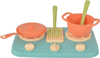 Let’s Be Child Ocak Seti, sınıf veya piknik masası için harika bir oyuncaktır. Çocuklar tencerenin kapağını açıp kapatırken, tava sapını tutarken veya kepçeyle servis yaparken taklit yapar böylece hem kaba hem de ince motor becerilerinin gelişimine teşvik eder. Bu set aynı zamanda önemli sosyal becerileri ve görgü kurallarını öğrenmeye destek olur. Önce başkalarına hizmet etmek, "lütfen" ve "teşekkür ederim" demek ve bir yemeğin sonunda temizlik yapmak gibi.