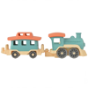 Parlak renkli buhar motoru, kolayca birbirine takılan vagon çeker. Vagonlarla hem ayrı ayrı hem de birbirine bağlayıp uzun bir tren oluşturarak oynanabilir.