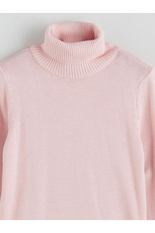 LCW ECO kalitesiyle üretilmiş Pembe Balıkçı Yaka Kız Çocuk Triko Kazak.
