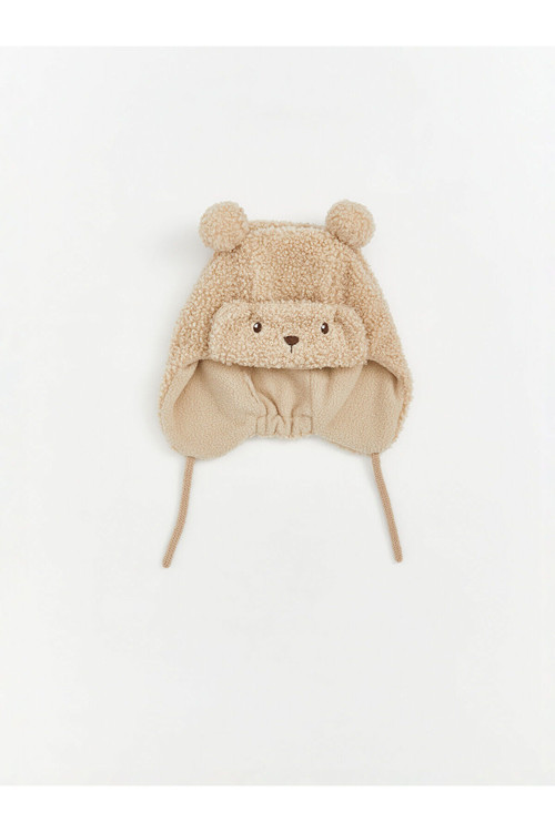 Erkek bebek kar şapkası üstü ponpon detaylı kulakları kapatan tasarımlıdır.