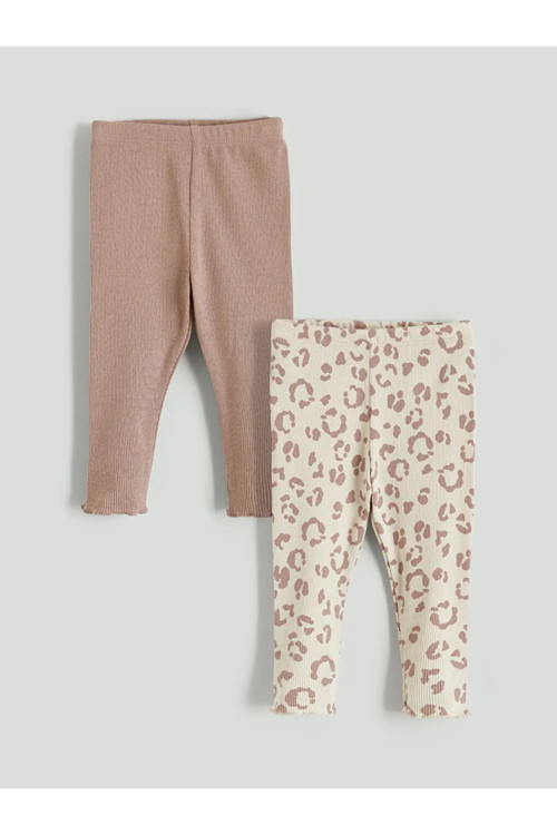 LCW baby kalitesiyle üretilmiş Bej Beli Lastikli Baskılı Kız Bebek Tayt 2'li.