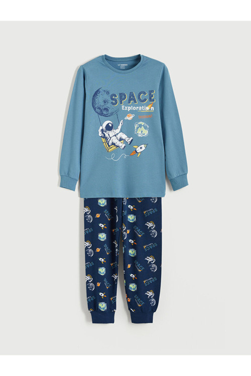 Ürün Kodu:W5MY25Z4-H9N - İndigoErkek çocuk pijama takımı, %100 pamuklu kumaştan üretilmiştir.