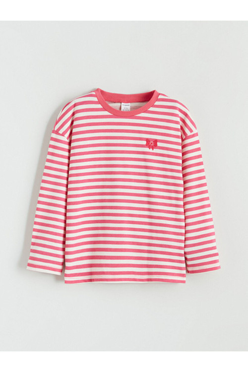 Ürün Kodu:W5MV35Z1-LHK - PembeBisiklet yaka, uzun kollu kız çocuk tişört, %100 pamuklu kumaştan üretilmiştir.