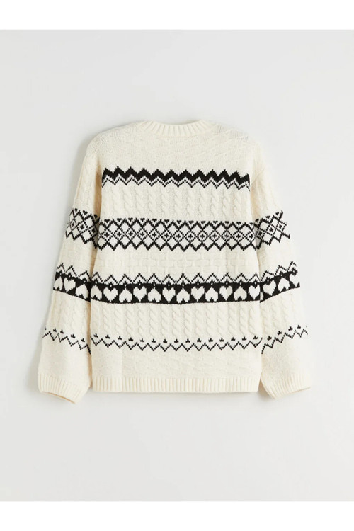 LCW Kids kalitesiyle üretilmiş Ekru Bisiklet Yaka Desenli Kız Çocuk Triko Kazak.