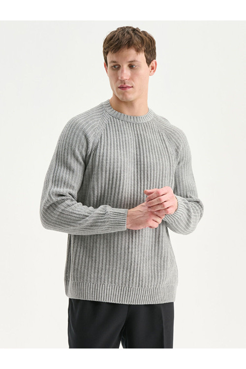 Ürün Kodu:W5FC84Z8-LAL - GriBisiklet yaka ve uzun reglan kollu erkek kazak, orta kalınlıkta dokulu triko kumaştan üretilmiştir.