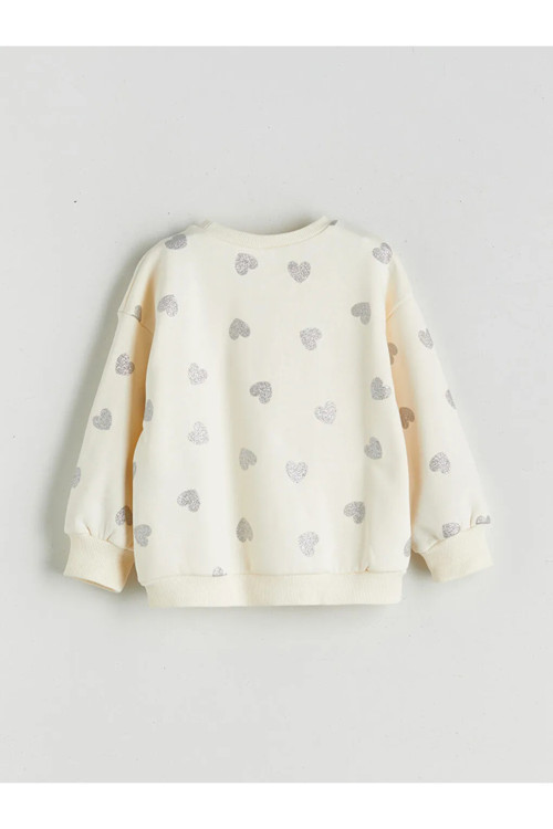 LCW Kids kalitesiyle üretilmiş Ekru Bisiklet Yaka Kalp Baskılı Kız Çocuk Sweatshirt.