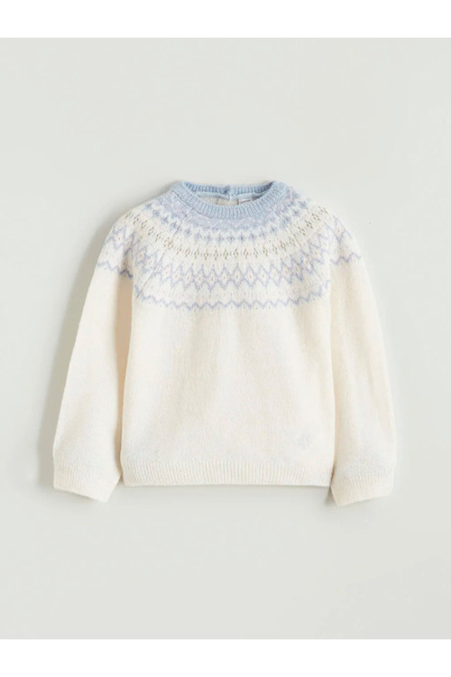 LCW baby kalitesiyle üretilmiş Ekru Bisiklet Yaka Kız Çocuk Kazak.