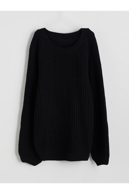 Ürün Kodu:W5HB53Z4-CVL - SiyahBisiklet yaka, reglan uzun kollu kız çocuk kazak, kalın örgü kumaştan üretilmiştir.