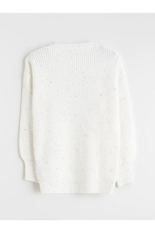 LCW Kids kalitesiyle üretilmiş Ekru Bisiklet Yaka Kız Çocuk Triko Kazak.