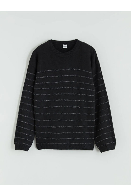 LCW Kids kalitesiyle üretilmiş Siyah Bisiklet Yaka Kız Çocuk Triko Kazak.