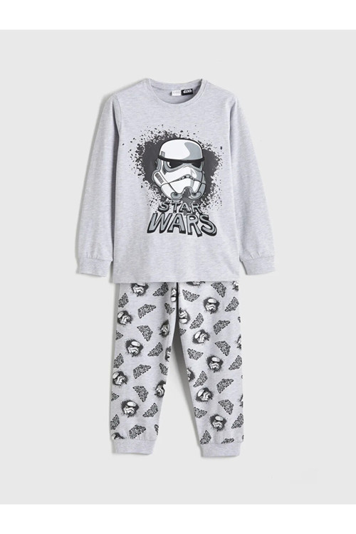 LCW Kids kalitesiyle üretilmiş Gri Bisiklet Yaka Star Wars Baskılı Erkek Çocuk Pijama Takımı.