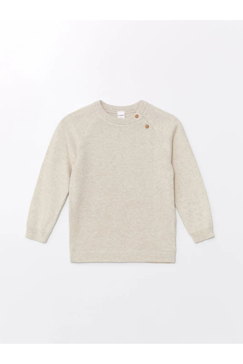 LCW Kids kalitesiyle üretilmiş Ekru Bisiklet Yaka Uzun Kollu Erkek Bebek Triko Kazak.