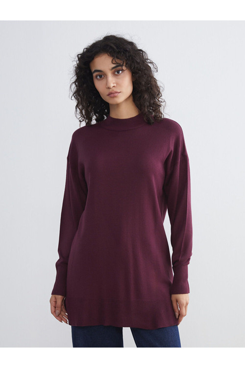 - Rahat kalıp dik yaka kadın tunik, triko kumaştan üretilmiştir.