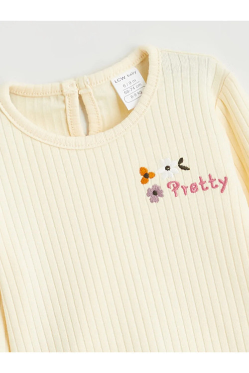 LCW baby kalitesiyle üretilmiş Bej Çiçek Nakışlı Kız Bebek Bluz ve Tayt.