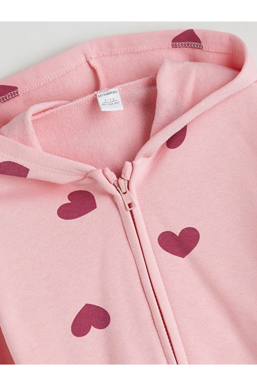 LCW Kids kalitesiyle üretilmiş Pembe Fermuarlı Kapüşonlu Kız Çocuk Sweatshirt.