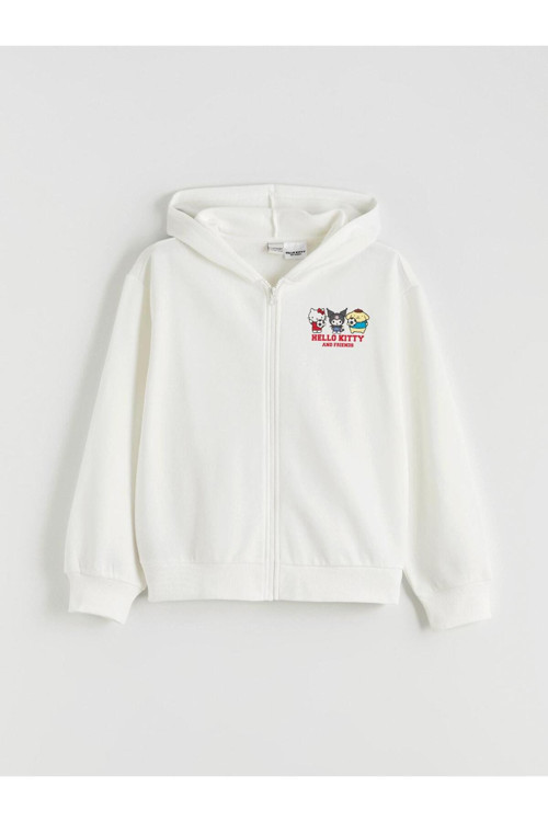 Hello Kitty Baskılı Kız Çocuk Kalın Fermuarlı Sweatshirt