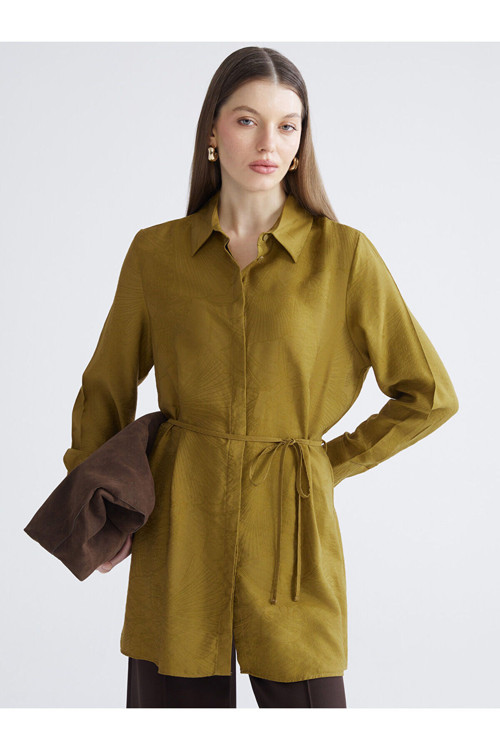 LCWAIKIKI Classic kalitesiyle üretilmiş Haki Kendinden Desenli Kadın Gömlek Tunik.