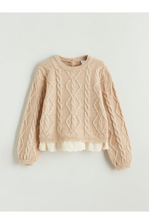 Lc Waikiki Kids Bej Bisiklet Yaka Kız Çocuk Kazak