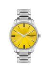 Modern ve şık tasarımıyla öne çıkan bu model, gümüş tonlarındaki paslanmaz çelik kasa ve kordonuyla dayanıklılığı ve zarafeti bir arada sunar. Sarı kadranı, kontrast detaylarla zenginleştirilmiş olup, zamanı kolayca okumanızı sağlar.