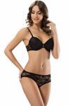 Siyah renk dolgusuz dantelli sütyen takım, polyester karışımlı materyali sayesinde uzun süreli kullanımda bile formunu korur ve konfor sağlar. Her yaş grubuna uygun tasarımıyla geniş bir kullanıcı kitlesine hitap eder. Denim kumaşı, hem dayanıklı hem de şık bir görünüm sunar. Üç parçadan oluşan set, balenli yapısıyla mükemmel destek ve rahatlık sunarken, dantel dokuması ile feminen bir zarafet katmaktadır. Sabit kap özelliği sayesinde günlük kullanım için idealdir