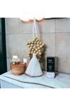 Bohem tarzıyla evinizin atmosferini zenginleştiren dekoratif püsküllü ahşap boncuklu duvar süsü, mekanınıza doğal bir dokunuş katıyor