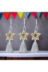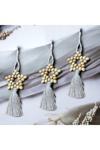 Bohem tarzıyla evinizin atmosferini zenginleştiren dekoratif püsküllü ahşap boncuklu duvar süsü, mekanınıza doğal bir dokunuş katıyor
