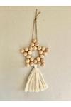 Dekoratif Püsküllü Cilasız Ahşap Boncuklu Yıldız Duvar Süsü Kapı Süsü