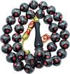Gümüş - Mercan İşlemeli Ayyıldız Gümüş Püsküllü Oltu Taşı Tesbih Lt996