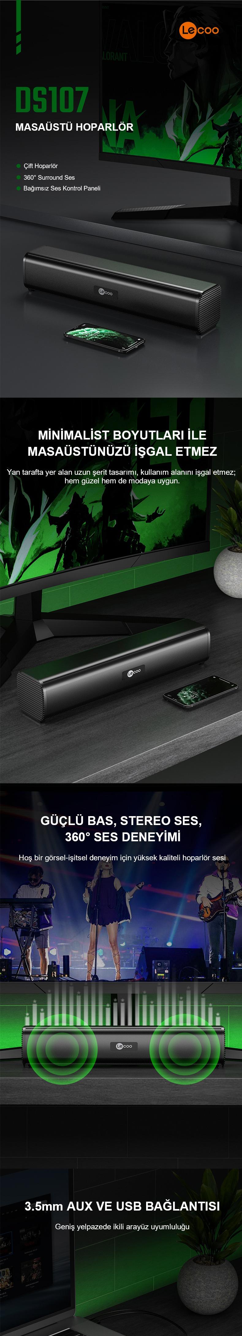 DS107, Lecoo'nun yüksek kaliteli ses deneyimini taşınabilir bir formda sunduğu kablolu soundbarıdır. İşte bu şık ve güçlü soundbarın öne çıkan özellikleri: