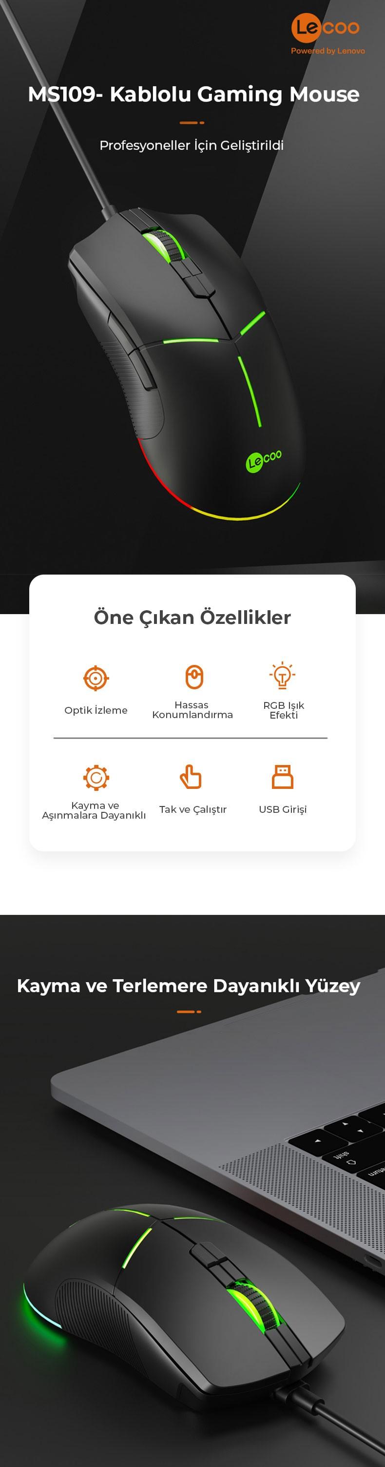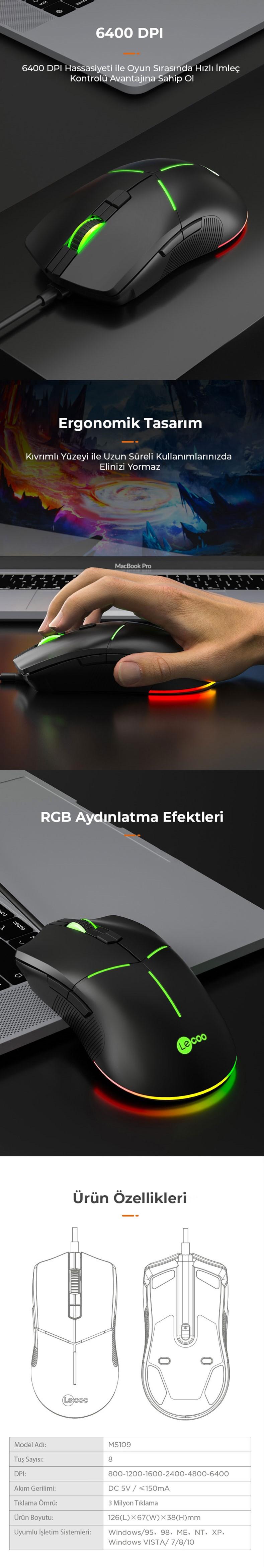 Paket İçeriği 1x Lecoo MS109 RGB Kablolu Gaming Oyuncu Mouse