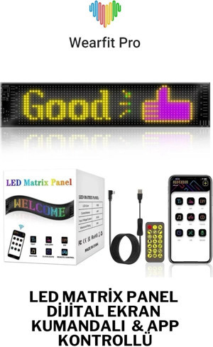 LED Matrix Panel Ekran Kumandalı Iş Yeri Otomobil Tır Kamyon Cama Yapışkanlı Kedi Gözlü Emoji ve Animasyonlu (9*37cm)
